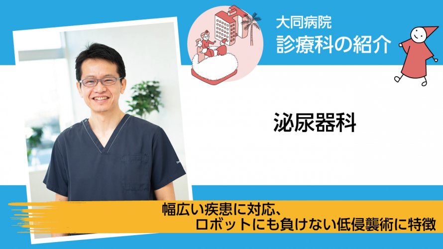 泌尿器科 2020.08.27 泌尿器科 DaidoTV, 診療科紹介動画 男女の泌尿器疾患はもとより、男性の前立腺疾患、そして女性の骨盤性器脱、小児疾患まで幅広い疾患に対応しています。そして外科手術ではなんといっても、ロボットにも負けない低侵襲術に定評アリ。高齢の患者さまに […] 続きを読む